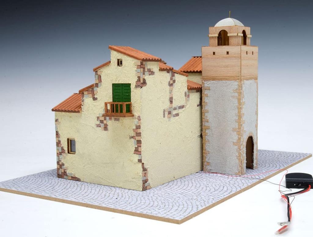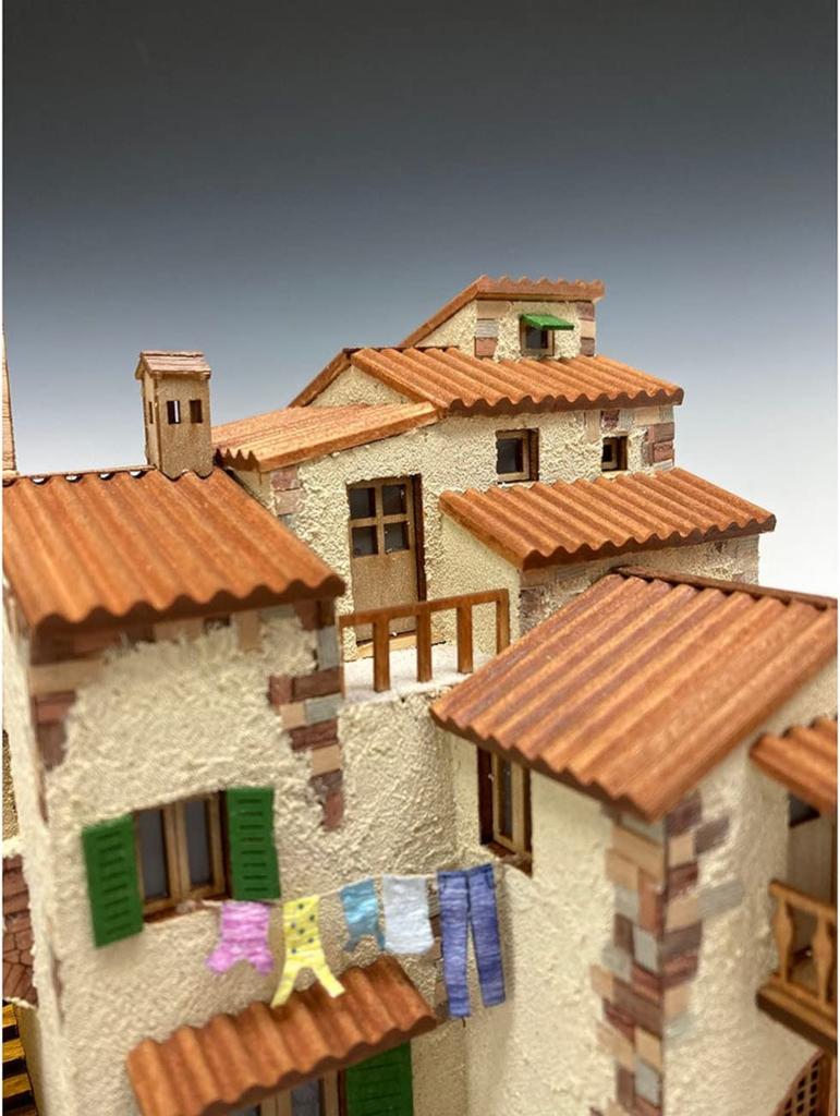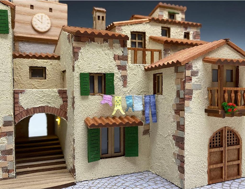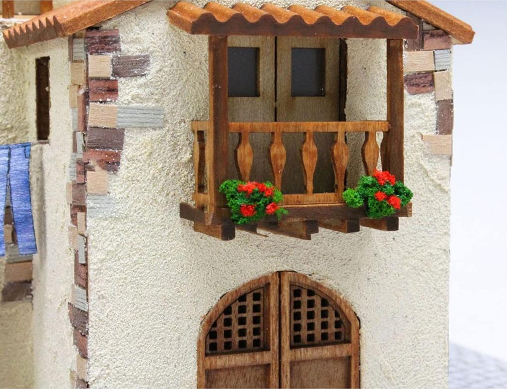Белье, колышущееся на ветру, красные цветы и слабо освещенная лампа (Светодиодный чип в комплекте) в конце каменных ступеней, ведущих к башне, создается сцена, словно сошедшая с экрана.