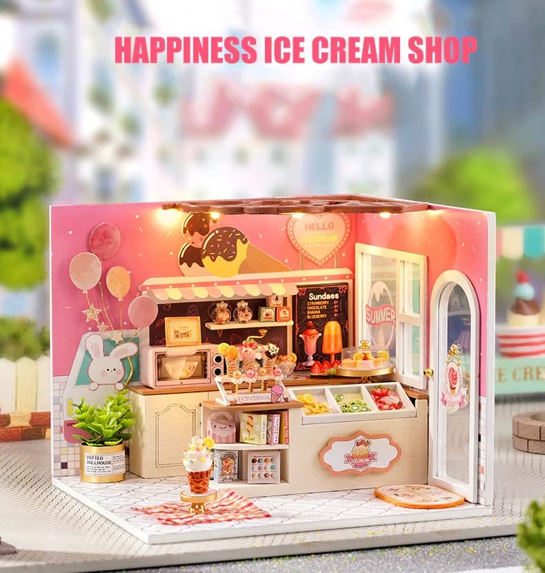 (t-ФРИК) Кукольный домик Набор для DIY Миниатюрный Серия "Моя маленькая сцена" (H-023 МАГАЗИН МОРОЖЕНОГО)