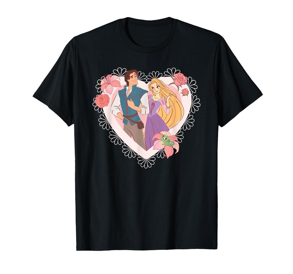 Футболка с сердечком на День святого Валентина с принцессой Диснея Рапунцель и Флинном Райдером