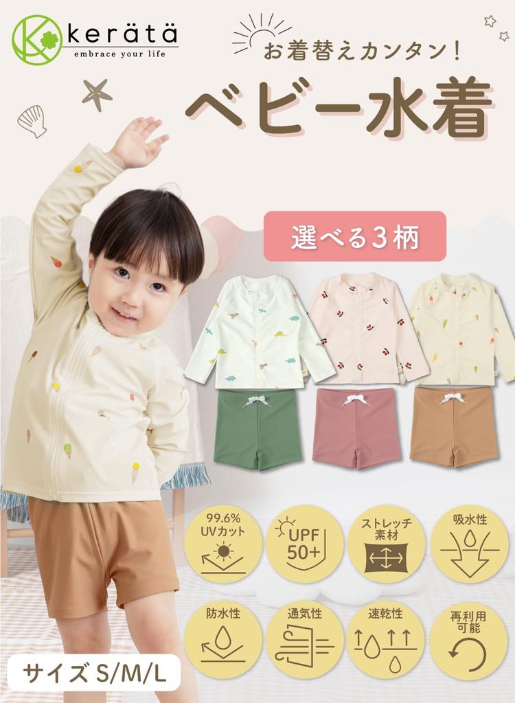 Купальник Keratta Ibul для малышей, Рашгард, Плавки для плавания для девочек и мальчиков (Япония, Рост, 90 см, Малыш, Динозавр)