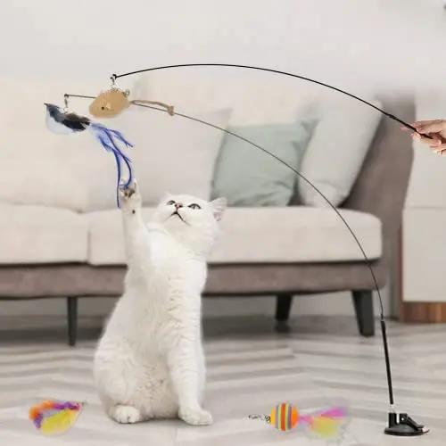 Смешная игрушка-палочка для кошки, интерактивная игрушка-дразнилка для котят с присоской, товары для домашних животных для кошек