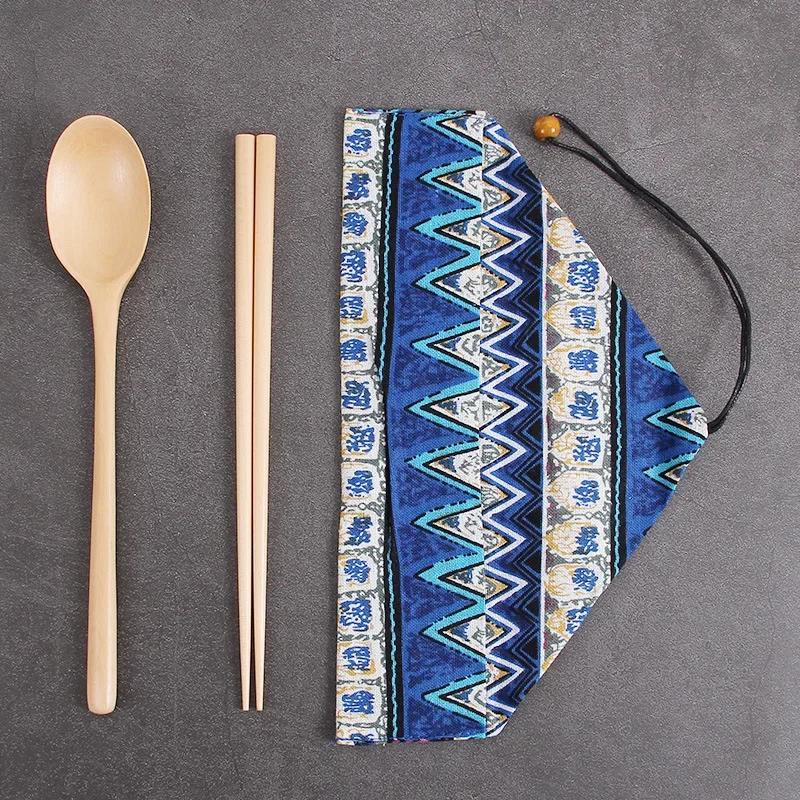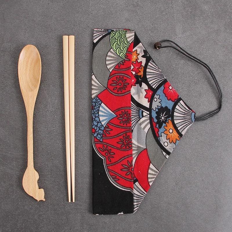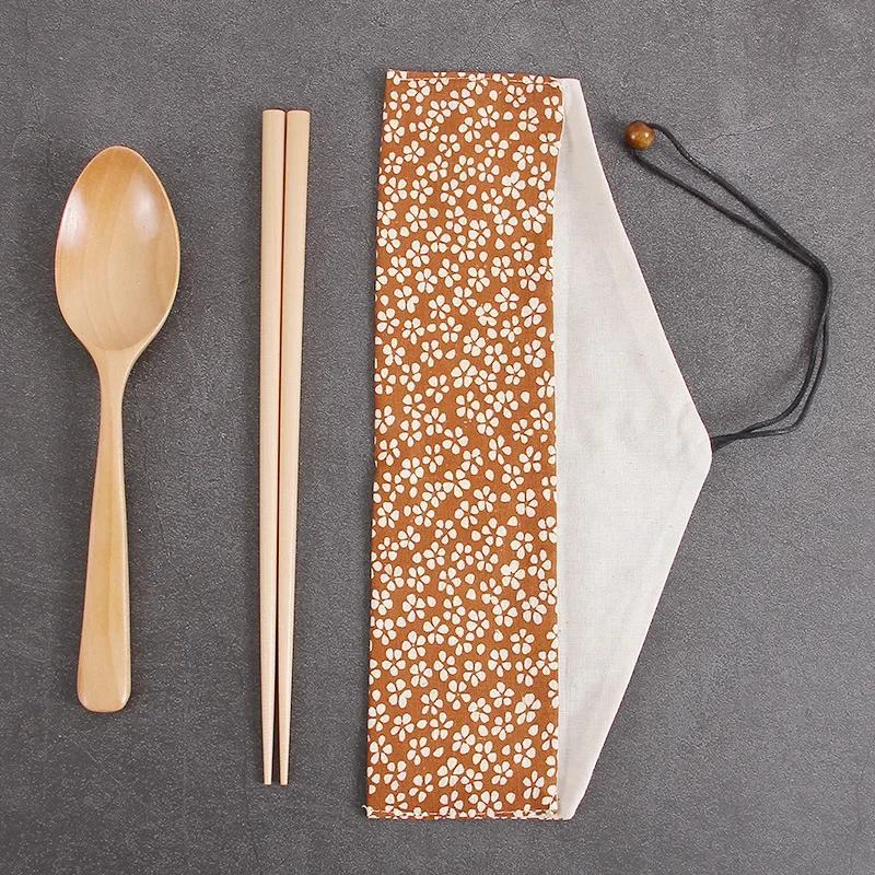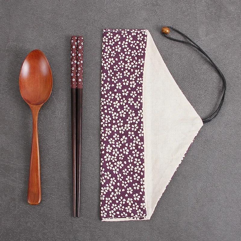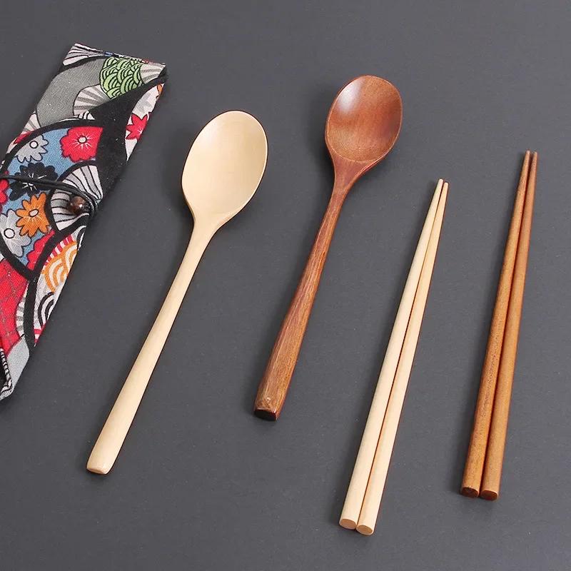 Wooden Cutlery Sets With Spoon Fork, Environmentally Friendly, Travel Portable, Tableware, Chopsticks, Cloth Bag