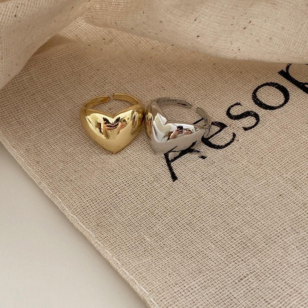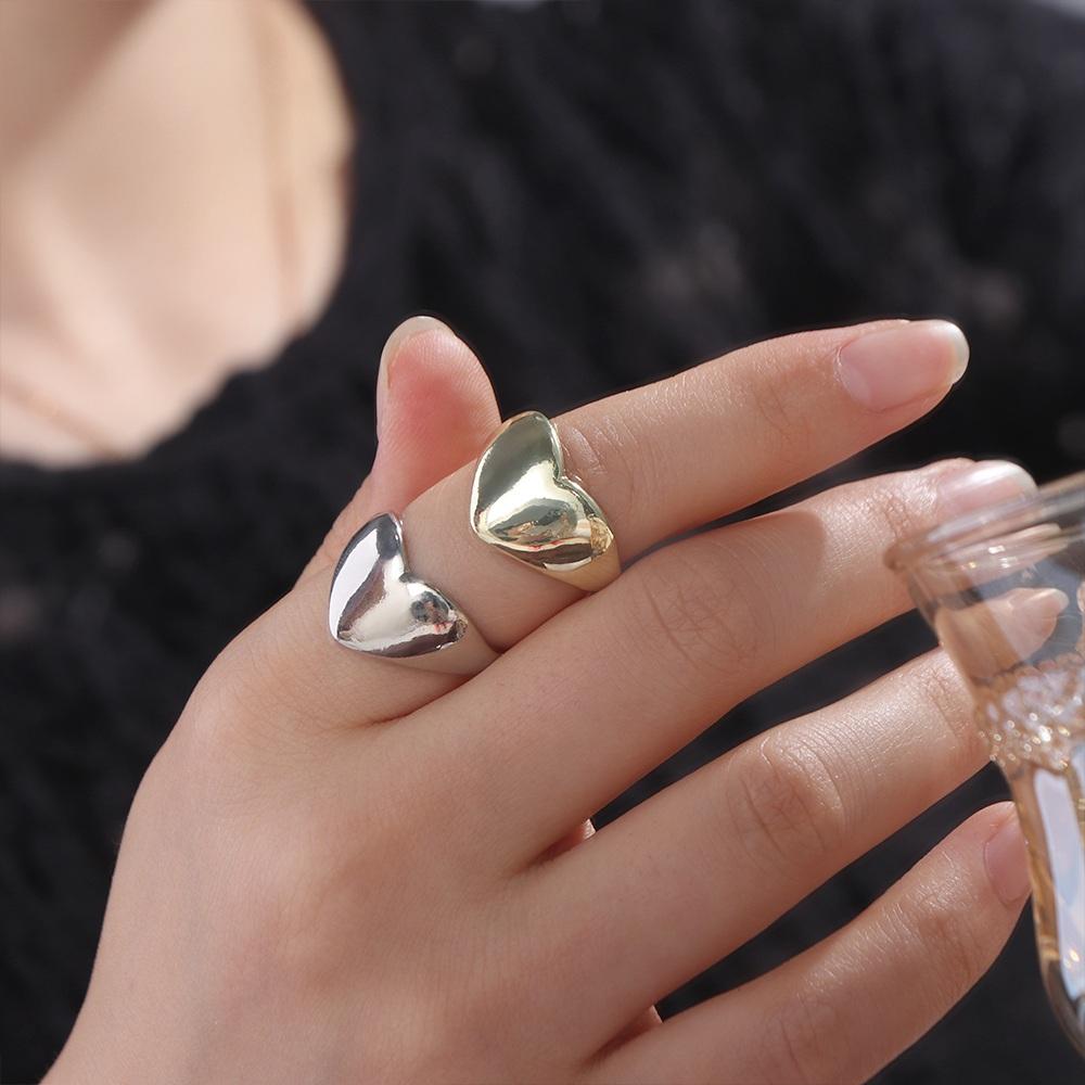Jewelry Accessories Geometric Open Ring Geometric Wide Finger Buckle Retro Metal Heart Ring Couple
