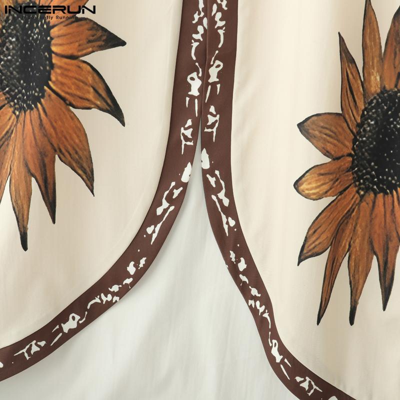 INCERUN Мужской кардиган с рукавом три четверти, с цветочным принтом, повседневный, асимметричный, удлиненный топ