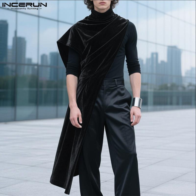 INCERUN Мужской водолазка на одно плечо с блестками, с высоким разрезом, повседневный длинный топ, футболка