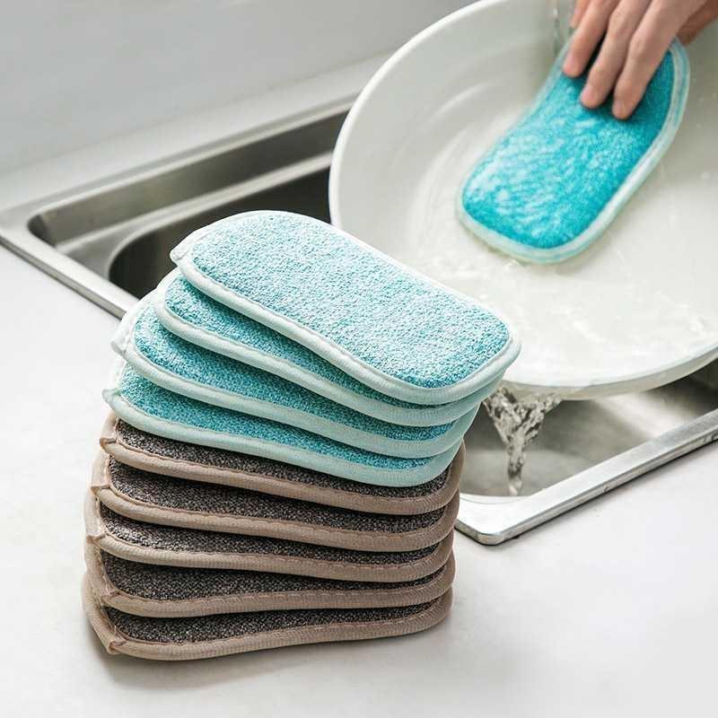 Двусторонняя губка, нейлоновая ткань для чистки, кухонная тряпка для мытья посуды, впитывающая щетка для чистки из микрофибры, домашние кухонные полотенца