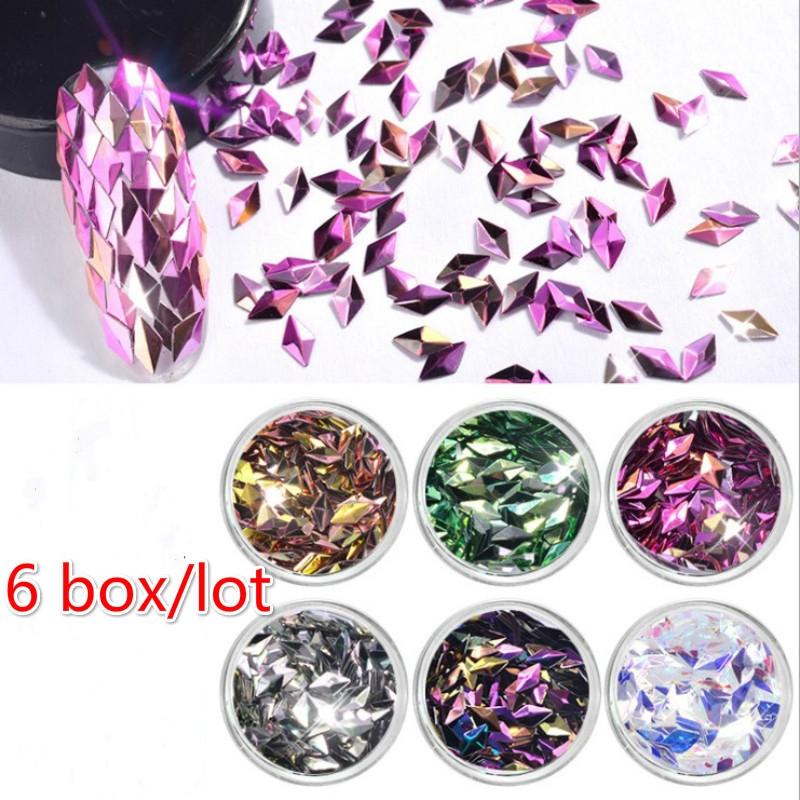 6 Коробок/набор Лазерная Смешанная Алмазная Пудра-Глиттер для Ногтей Пайетки Блестящие Разноцветные 3D DIY — купить товар онлайн с бесплатной доставкой по всему миру!