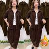 Женский осенне-зимний теплый вельветовый костюм-двойка - модный повседневный пиджак с лацканами и длинными рукавами и брюки-шаровары на вельветовой подкладке