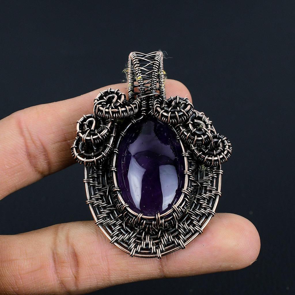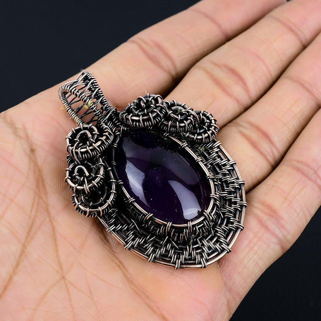 Аметистовый кулон, ювелирное изделие из драгоценного камня, кулон, обернутый медной проволокой 999 пробы, подарок для женщин, кулон ручной работы