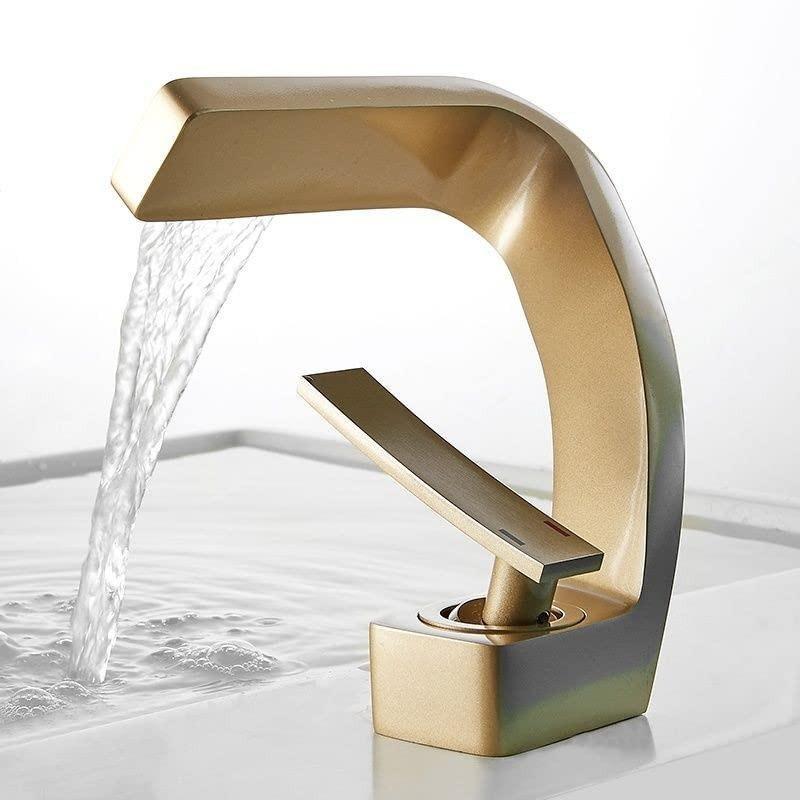 Смеситель для раковины в ванной с водопадом, Современный однорычажный смеситель горячей и холодной воды для ванной комнаты, туалета, туалетного столика, умывальника