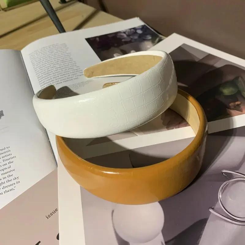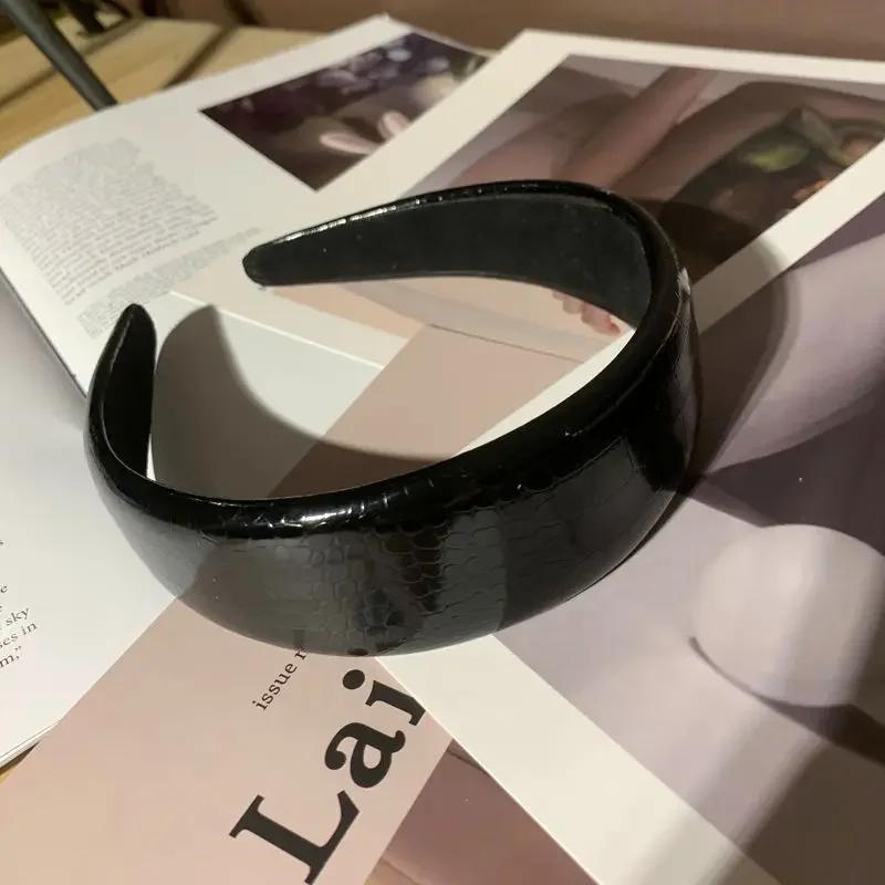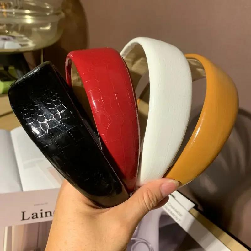 Новая глянцевая повязка на голову из искусственной кожи с имитацией крокодиловой кожи, женская простая широкая боковая модная повязка на голову, бусины, аксессуары для волос, подарок