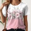 Новая женская повседневная футболка с коротким рукавом, летняя блузка с 3D цветочным принтом, футболка с круглым вырезом и коротким рукавом