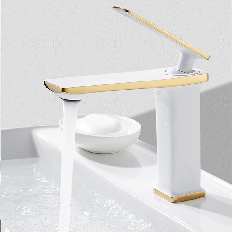 Белый латунный смеситель для раковины Смесители для раковины в ванной комнате Смеситель горячей и холодной воды Кран Настольный монтаж Однорычажный Одно отверстие Смесители для ванны и кухни