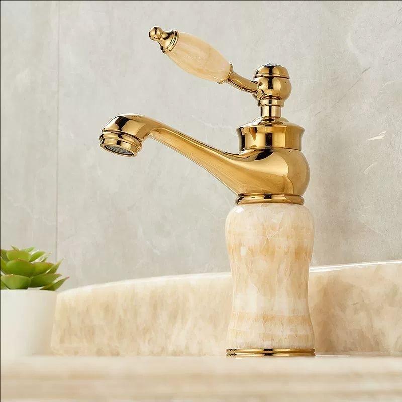 Розовое золото Роскошный смеситель для раковины в ванной комнате Одинарная ручка из нефрита Смесители для раковины из латуни Смеситель для раковины из натурального нефрита