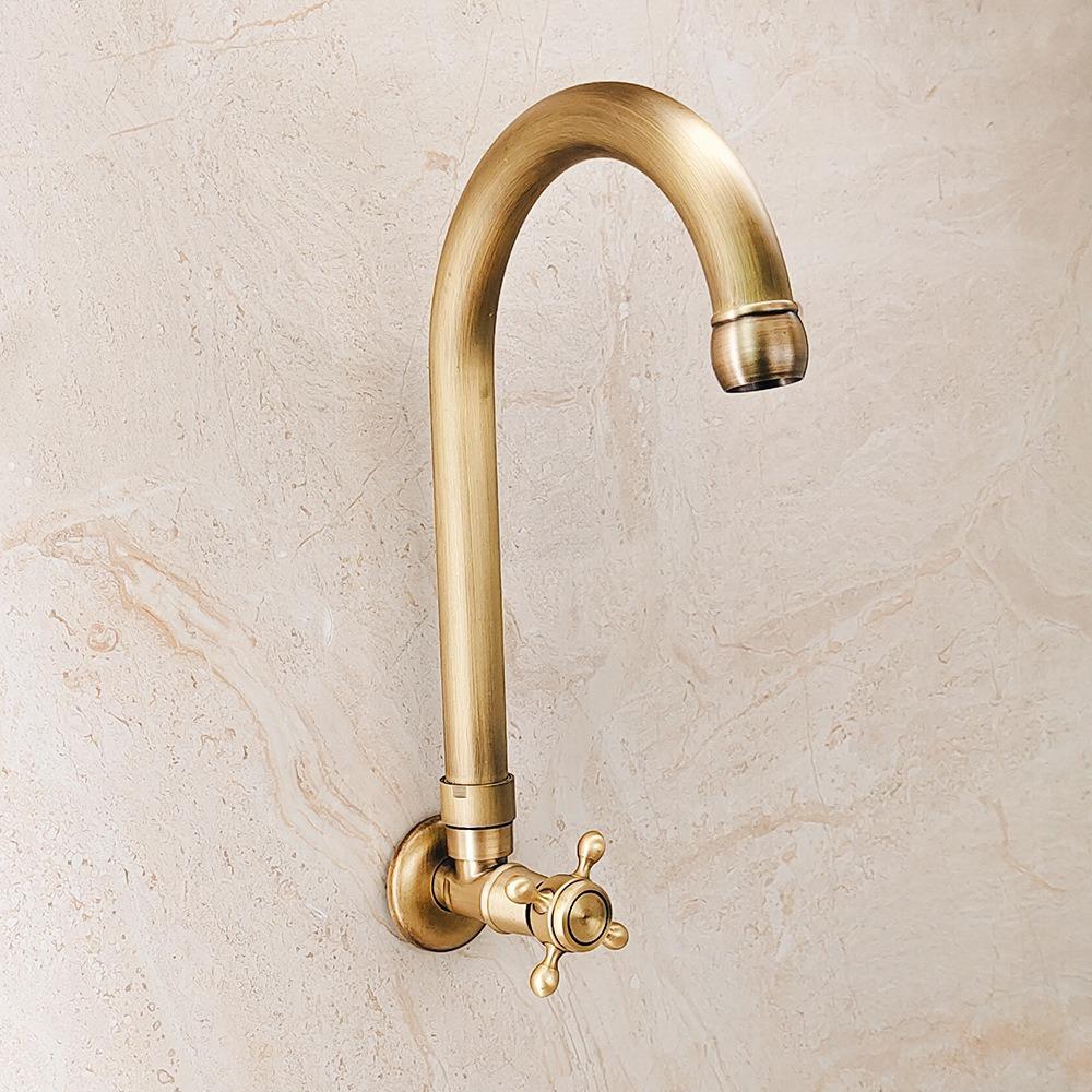 Удлиненный излив садового крана Смеситель для раковины в ванной комнате Одинарный холодный кран для швабры Античный уличный кран Цельная латунь