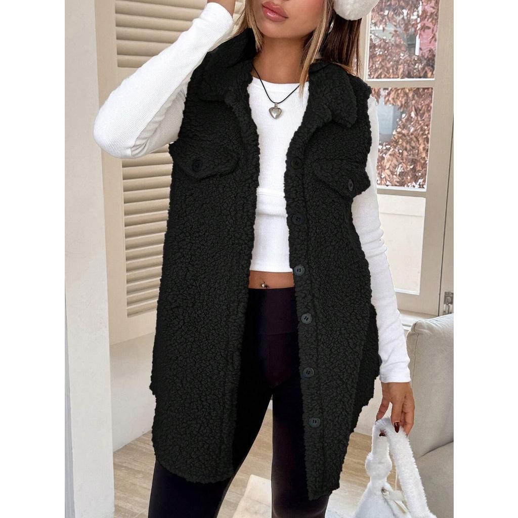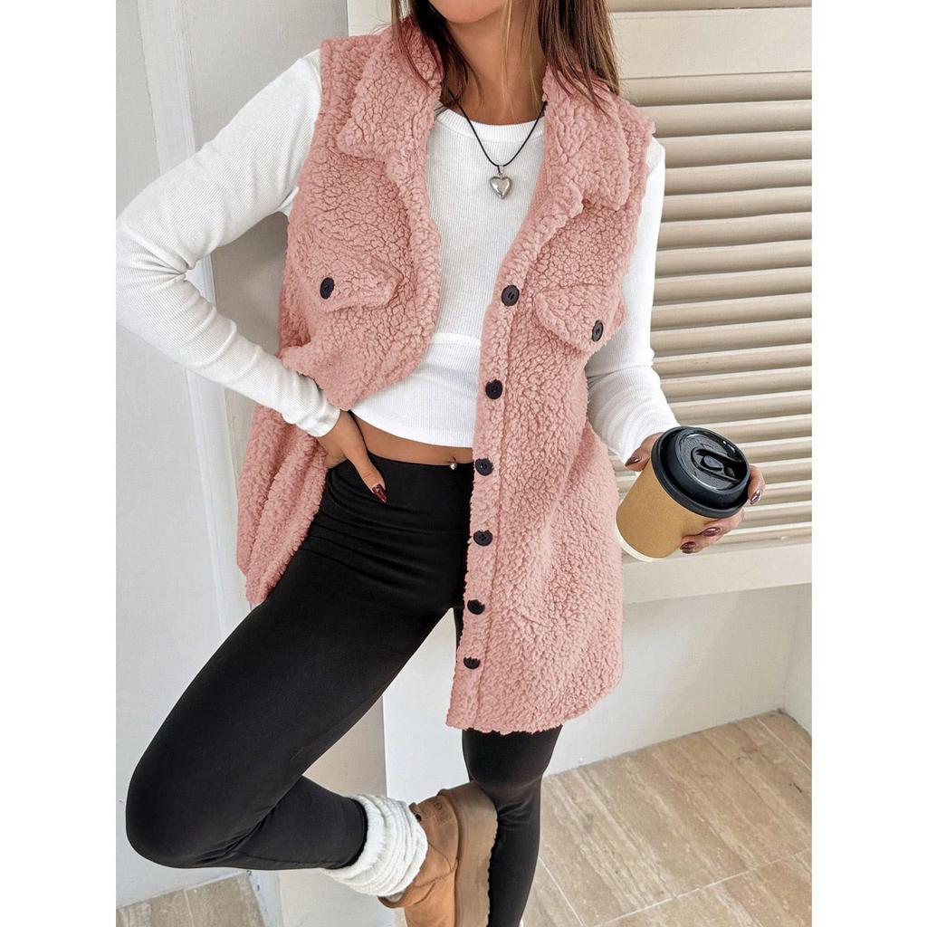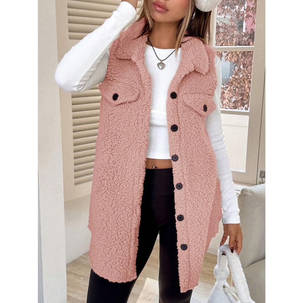 Осенне-зимний плюшевый жилет с лацканами на пуговицах, свободный, с темпераментом, для женщин, из искусственной овчины для работы