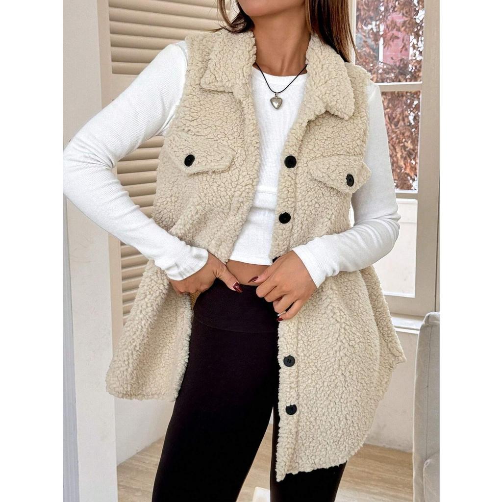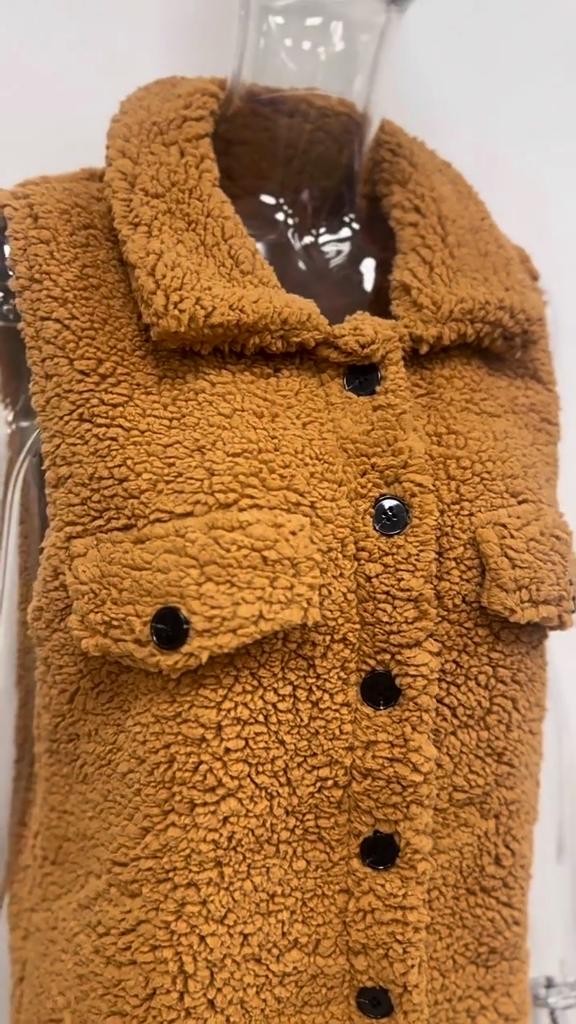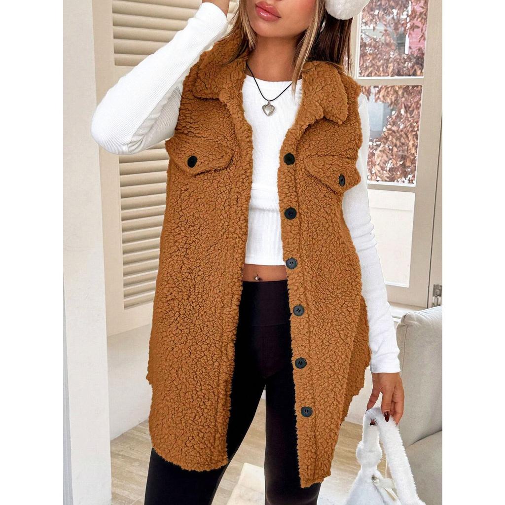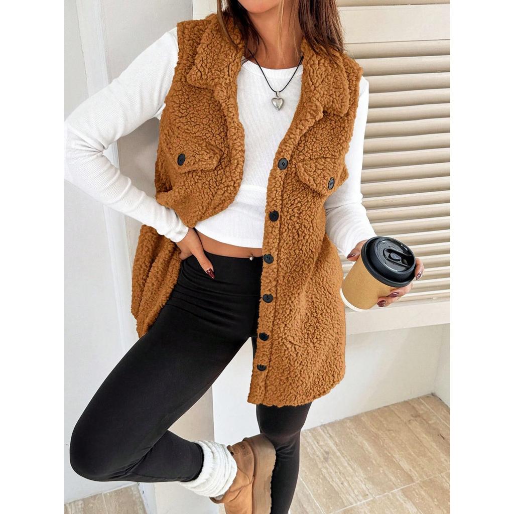Осенне-зимний плюшевый жилет с лацканами на пуговицах, свободный, с темпераментом, для женщин, из искусственной овчины для работы