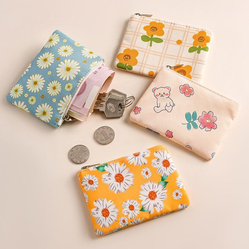 Мини маленький карманный кошелек маленький свежий холщовый цветочный тканевый кардхолдер на молнии для мелочи студенческая сумка для хранения монет