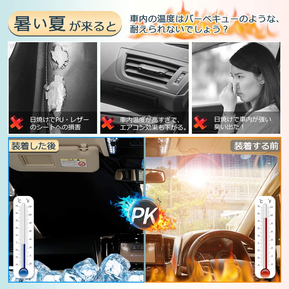 3. [Многофункциональный]: Алюминиевый тепловой экран может уменьшить блики солнечных лучей. Это не будет беспокоить других и защитит вашу конфиденциальность. Он также блокирует тепловые лучи, поддерживая низкую температуру в салоне летом и предотвращая утечку тепла зимой, обеспечивая эффект обогрева.. [Включает ремешок и сумку для хранения]: Этот продукт разработан с ремешком, поэтому вы можете хранить его с ремешком.. Сумка для хранения также была улучшена, чтобы ее можно было поместить внутрь чехла рулевого колеса.