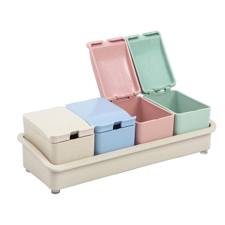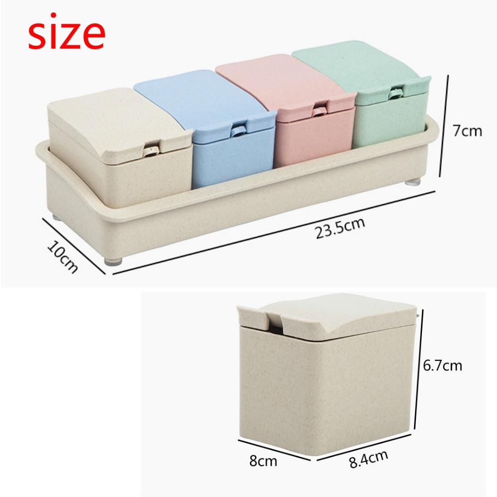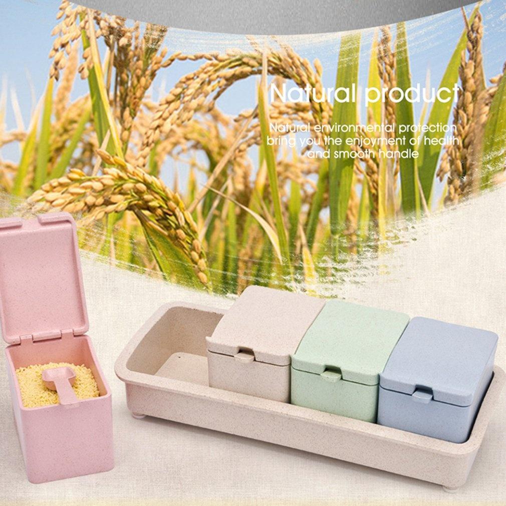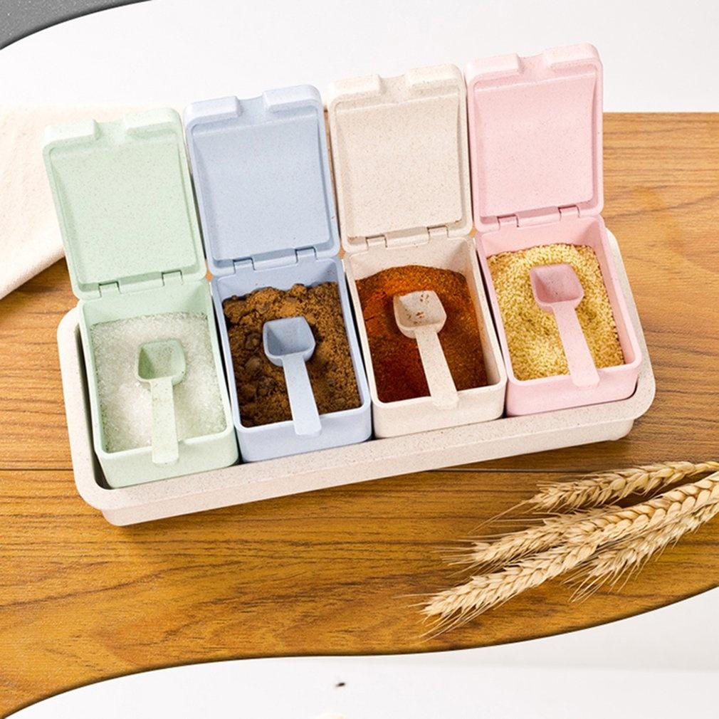 Новая креативная коробка для приправ из пшеничной соломы, четыре сетки с ложкой, контейнер для еды, банка для специй, домашний кухонный прибор
