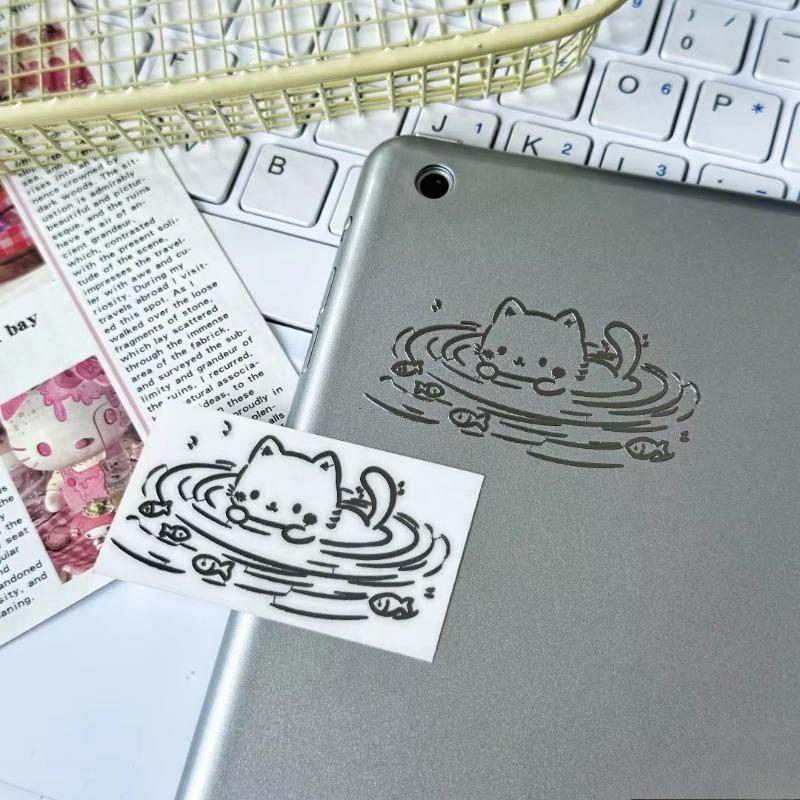 3 шт. Милый кот, играющий в воде, 3D рельефная металлическая наклейка, водонепроницаемая мультяшная наклейка для украшения планшетов, ноутбуков
