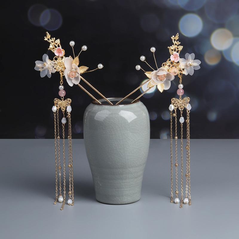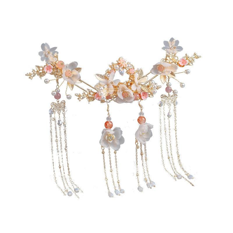Головной убор в древнем китайском стиле, женский древний стиль, заколка для волос с кисточкой, Золотая шпилька, свадебная расческа для волос, набор украшений для волос с короной для волос