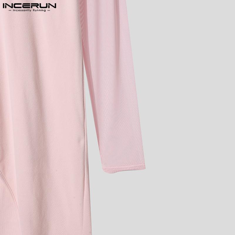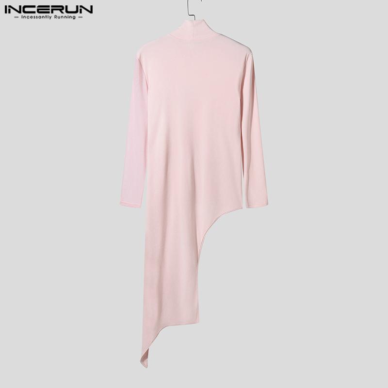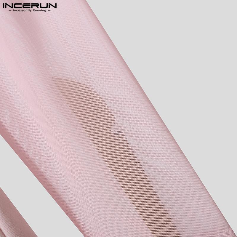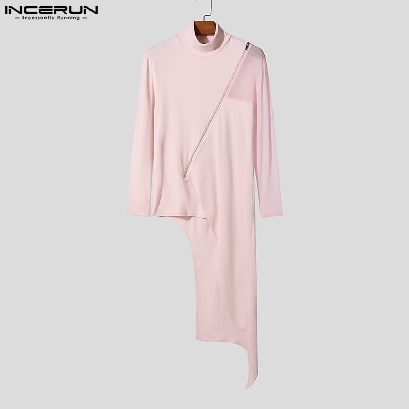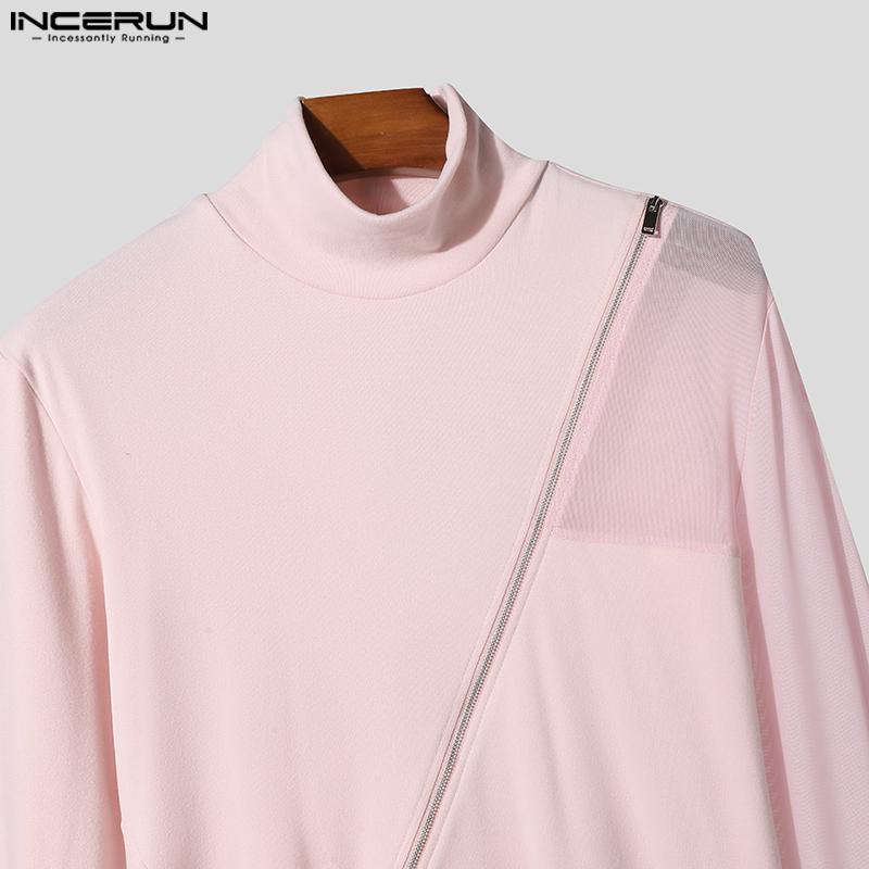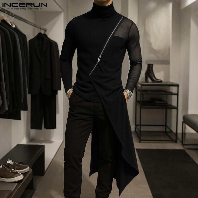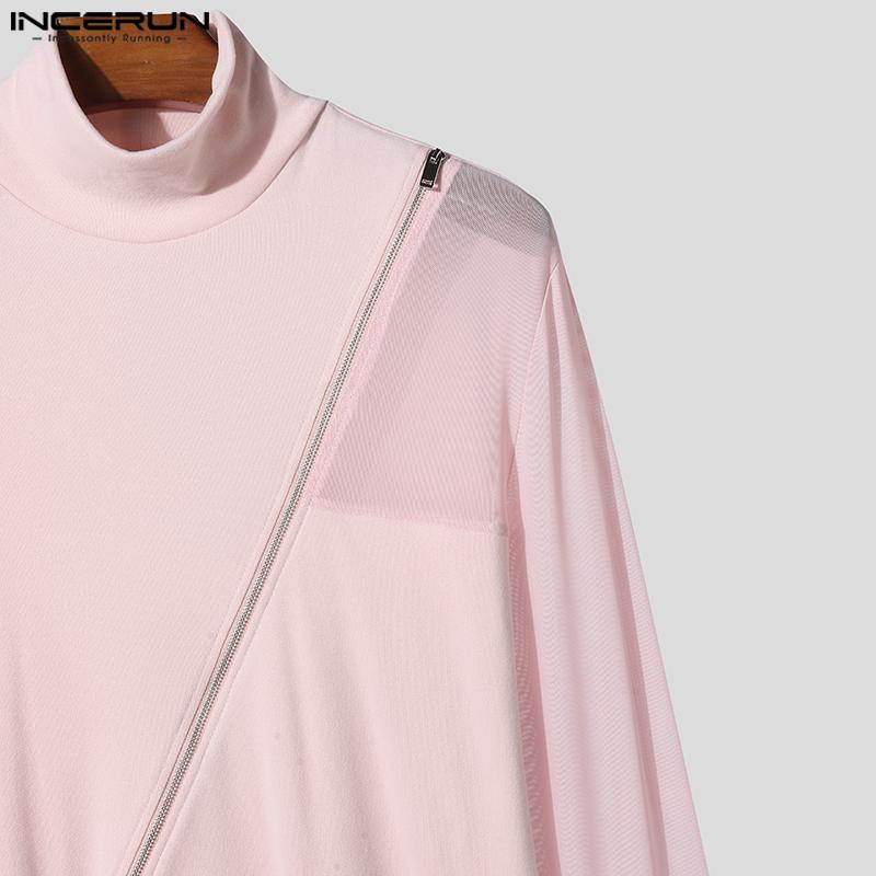 INCERUN Осенние мужские водолазки с длинным рукавом, топы с сетчатой вставкой, длинные туники-футболки