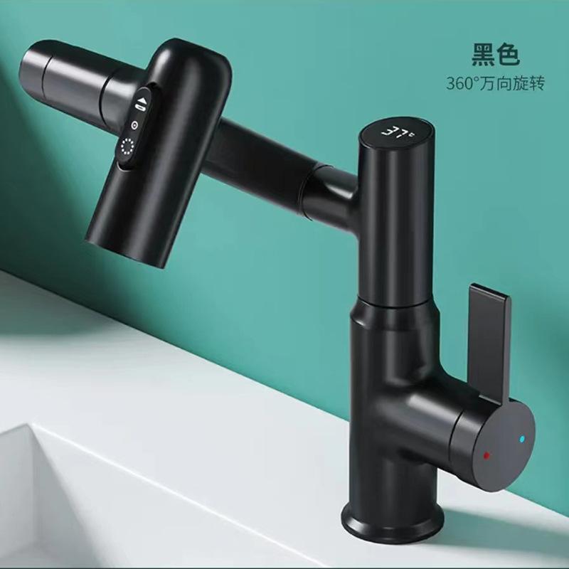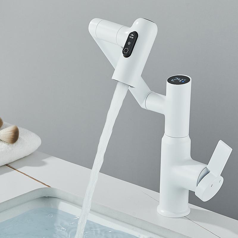 Цифровой дисплей, светодиодный смеситель для раковины, вращение на 360 градусов, многофункциональный распылитель струи, смеситель для мойки горячей и холодной воды, кран для ванной комнаты