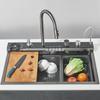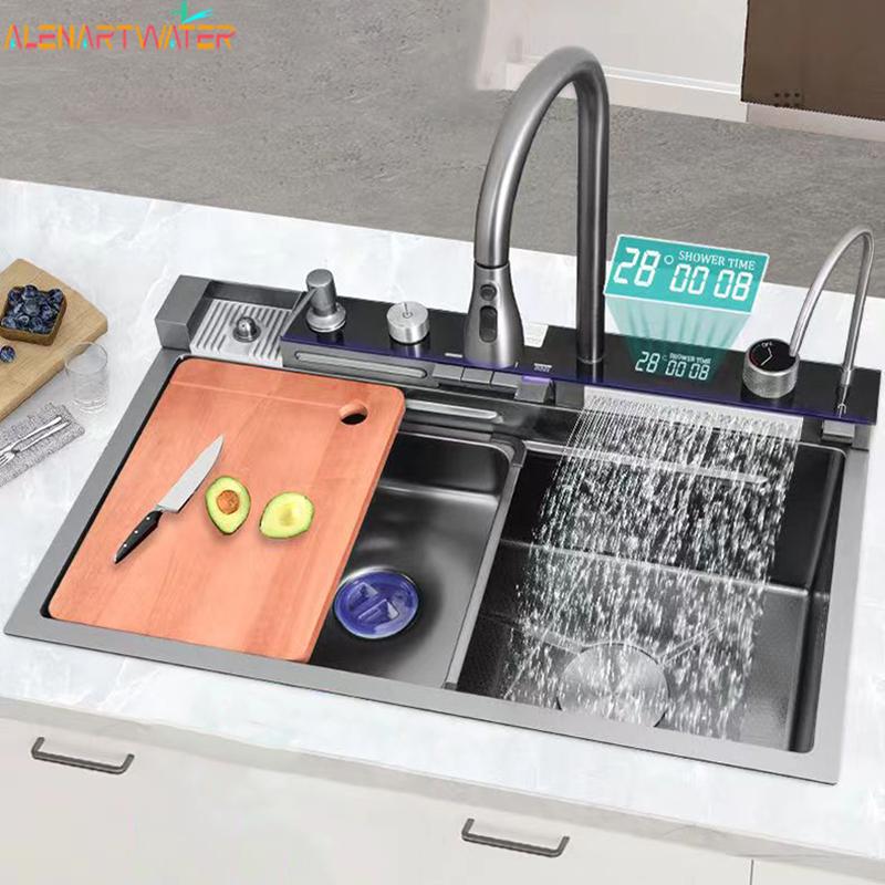 Кухонная раковина с водопадом из нержавеющей стали 304, цифровой дисплей, большая одинарная раковина, раковина для посуды с многофункциональным сенсорным водопадом