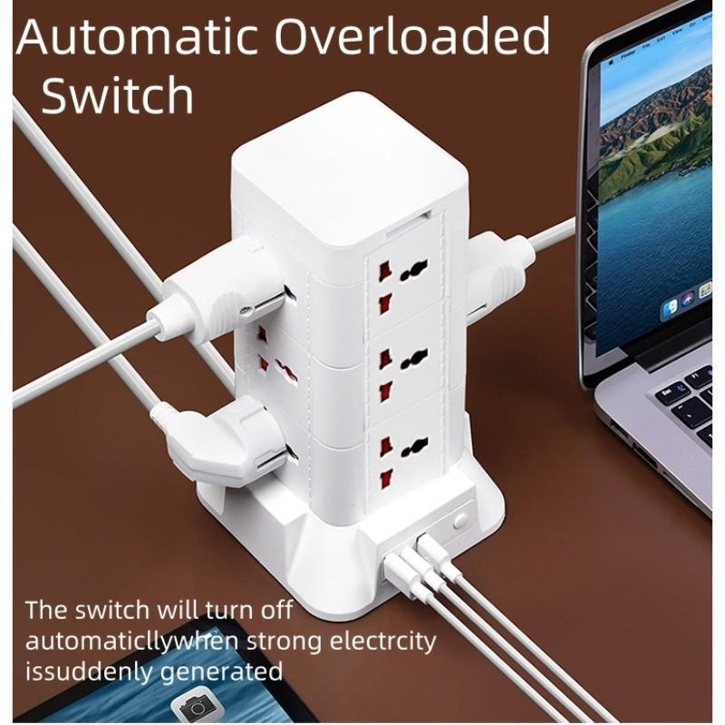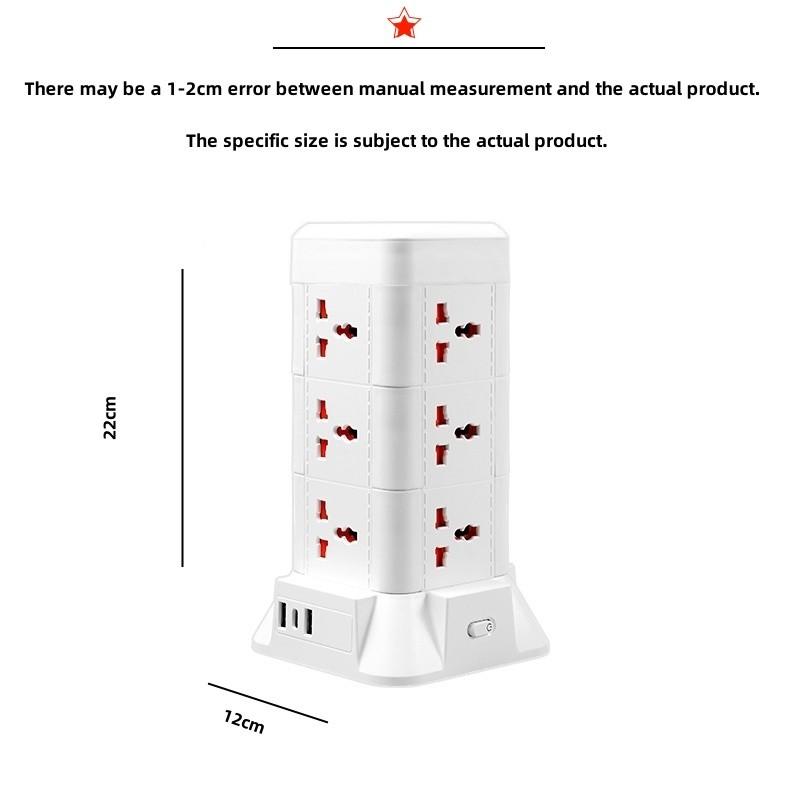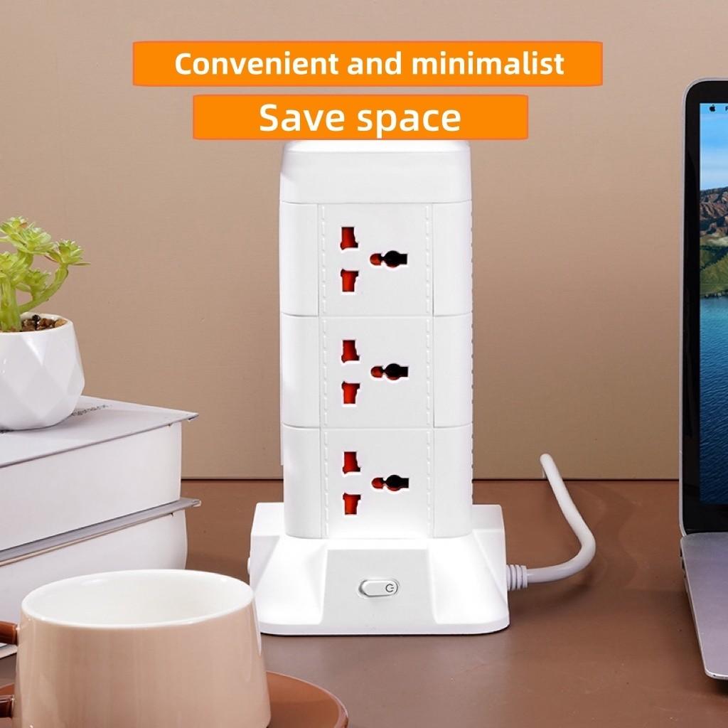 ◆ Удлинитель-башня с USB-слотом: Башня-адаптер для вилок оснащена 12 розетками переменного тока (до 2500 Вт), 2 порта USB-A и 1 порт USB-C, которые могут одновременно питать 15 устройств. Он может стать зарядной станцией для нескольких устройств