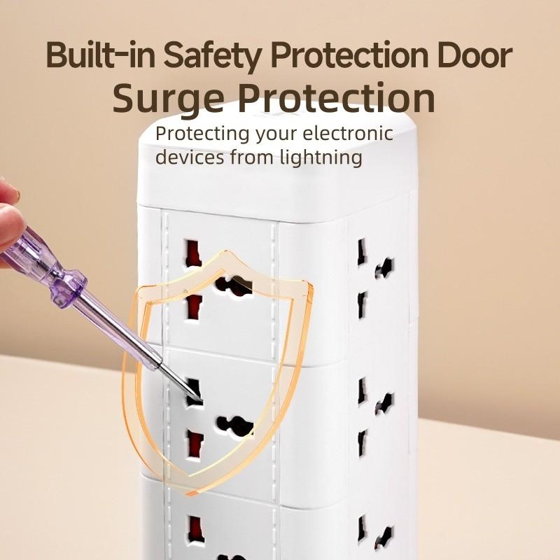 ◆ Многократная защита: Сетевой фильтр-удлинитель башенного типа оснащен сетевым фильтром 1700 Дж и защитой от перегрузки. Когда вы используете этот многорозеточный удлинитель-башню с USB-слотом для бытовой техники или приборов высокого класса, вы можете обеспечить безопасность: