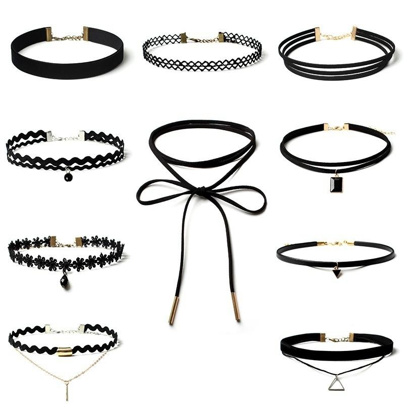 Женский черный чокер 10 штук/набор винтажный бархатный женский кулон ретро украшения