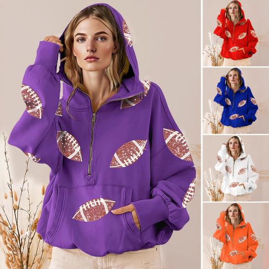 Оставайтесь стильными и уютными в этом женском свитшоте. Изготовленный из мягкой и дышащей смеси полиэстера и спандекса, этот свитшот обеспечивает комфорт и тепло для повседневной носки.. Дизайн с полумолнией добавляет удобства, подчеркивая эффект многослойности.. Этот свитшот, выполненный с использованием уникального дизайна 3D-печати, созданного с применением передовых технологий, демонстрирует реалистичные регбийные узоры для модного образа..