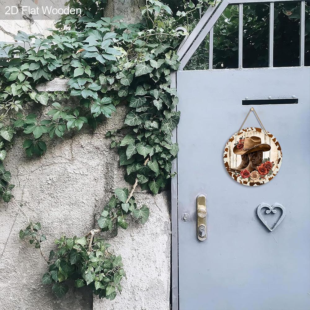 Деревянная вывеска в ковбойском стиле с узором из сапог и цветов - Ретро круглая вывеска для входной двери, настенный декор - Идеальная подвесная табличка для украшения вечеринки