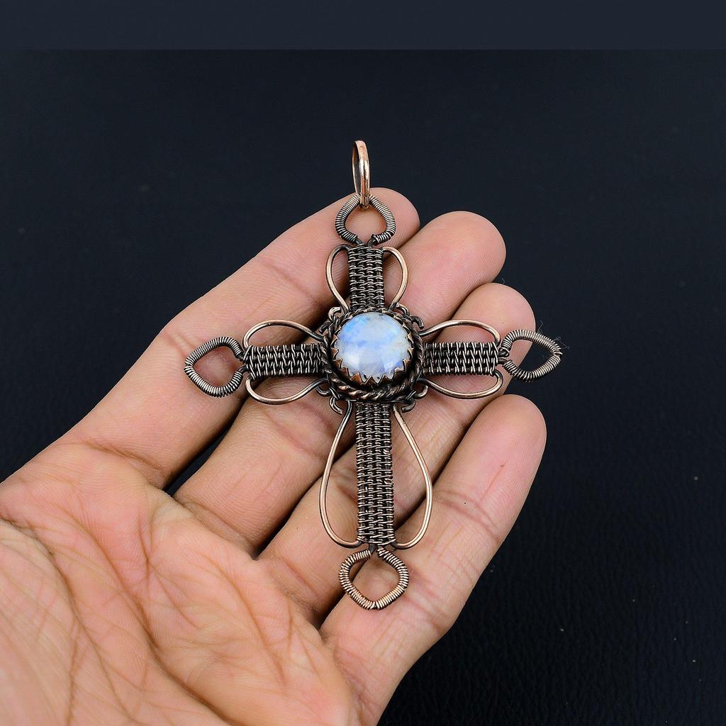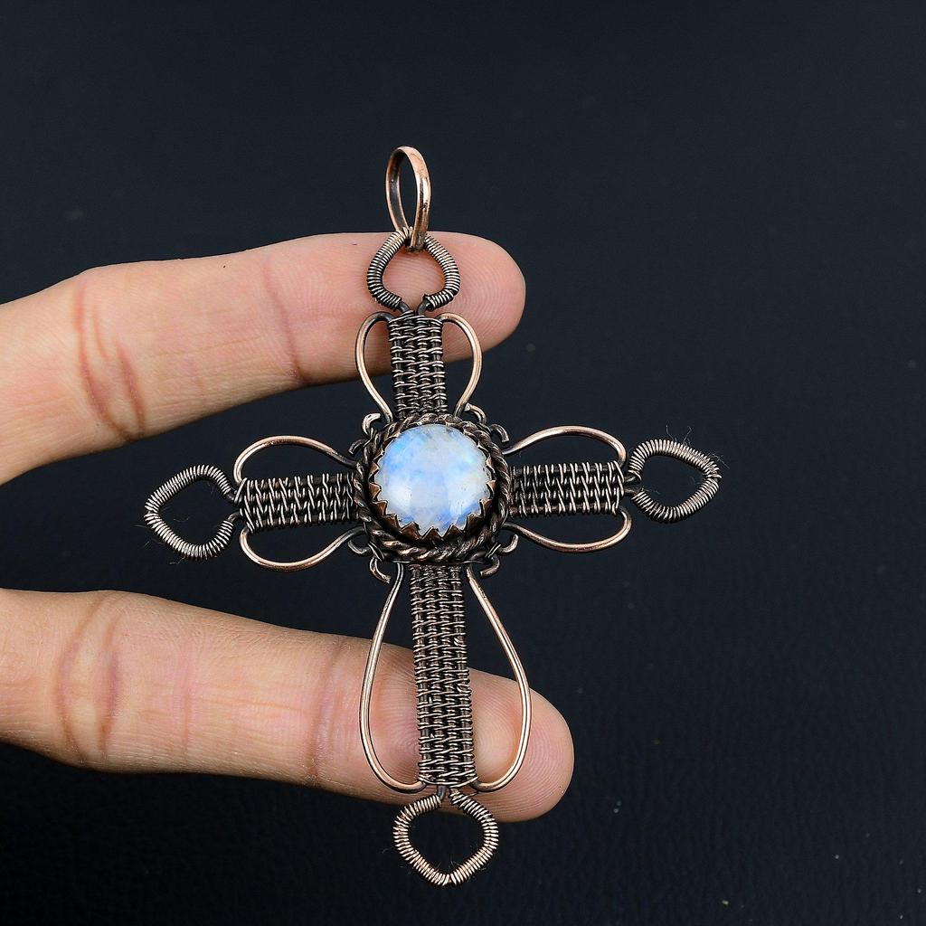 Кулон из лунного камня, обернутый медной проволокой 999 пробы, кулон из драгоценного камня ручной работы, подарок для мамы, антикварное украшение