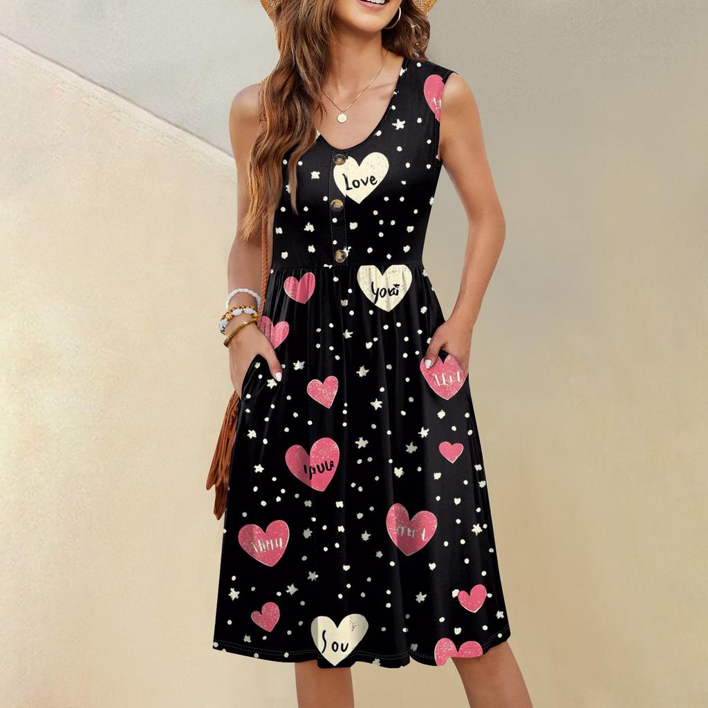 Женское повседневное модное сексуальное платье-туника без рукавов с V-образным вырезом и пуговицами на День святого Валентина