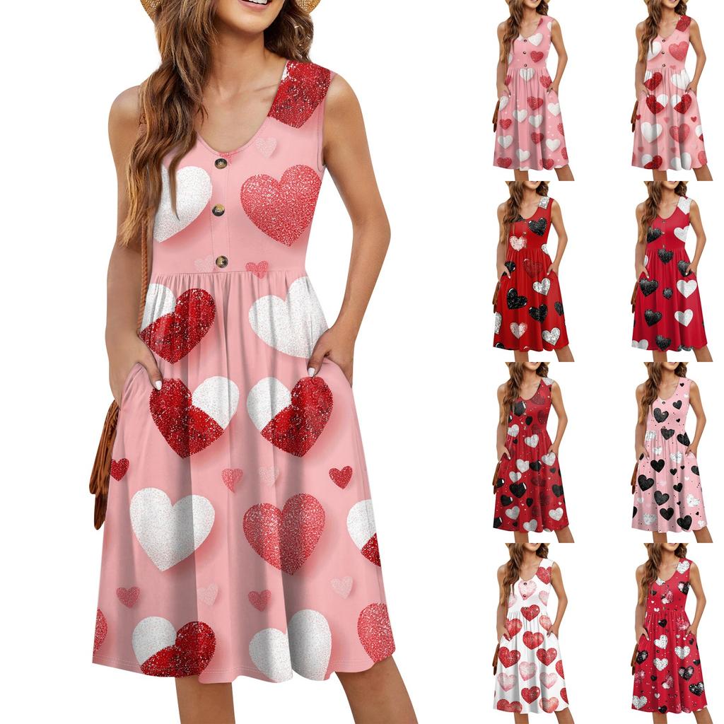 Женское повседневное модное сексуальное платье-туника без рукавов с V-образным вырезом и пуговицами на День святого Валентина