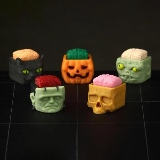 1/5 шт. Хэллоуин Кубическая голова Фигурка Жуткий Мини Череп Тыква Зомби Черный Кот Голова Смола Статуэтка Игрушка Украшение для дома офиса рабочего стола