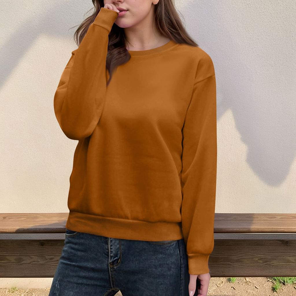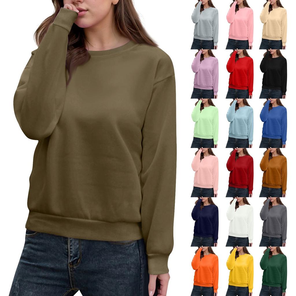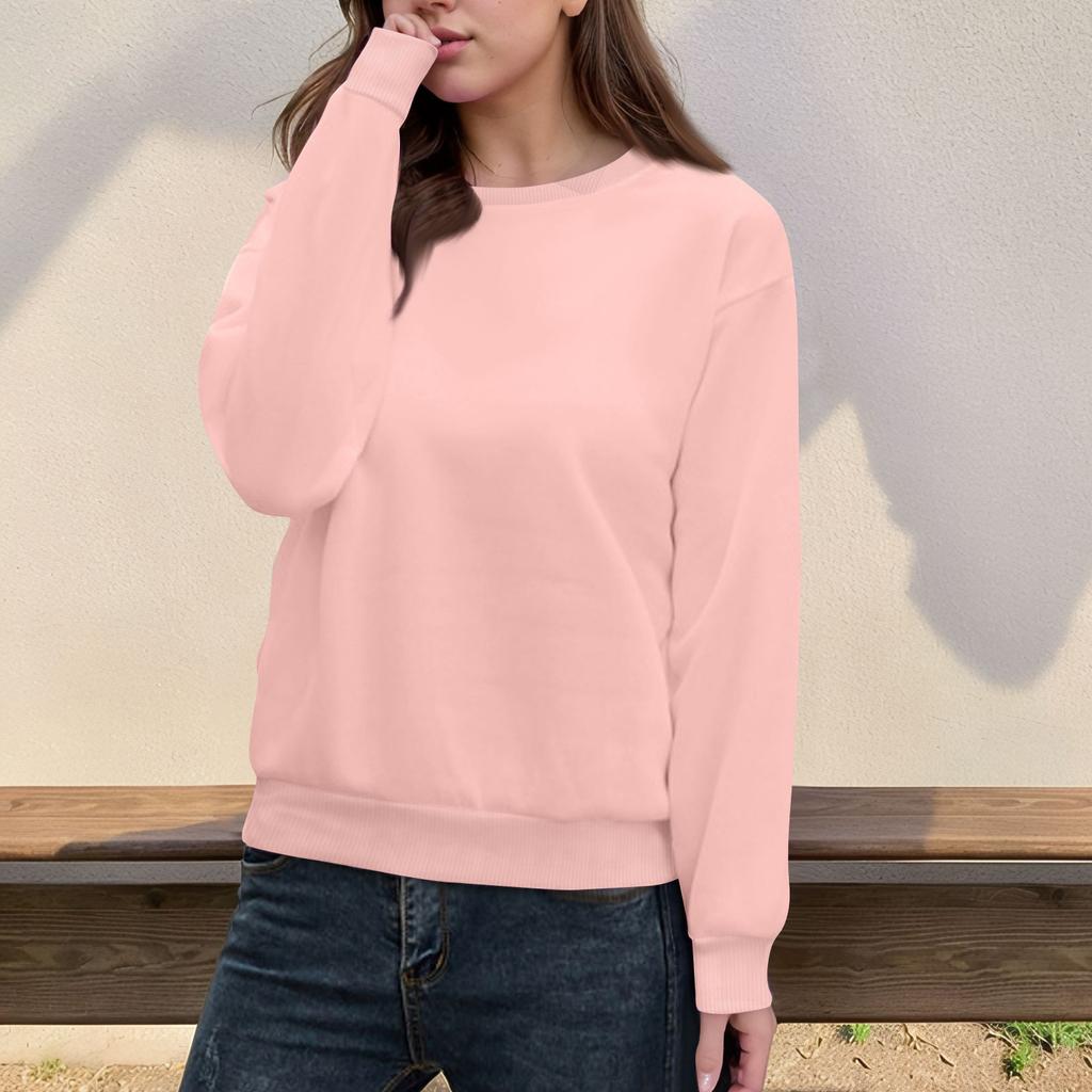 Женский повседневный модный топ, однотонный, круглый вырез, длинный рукав, пуловер