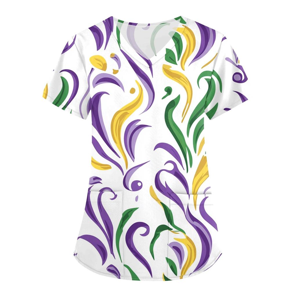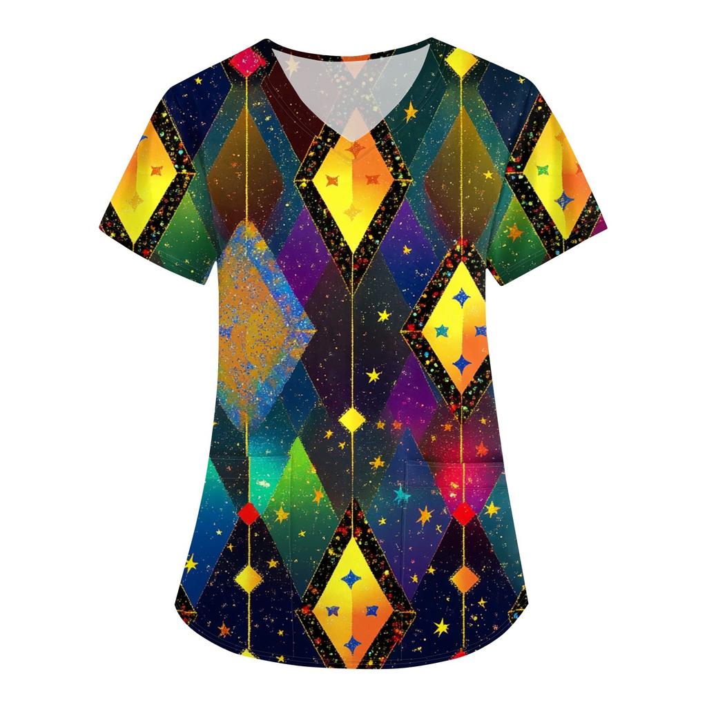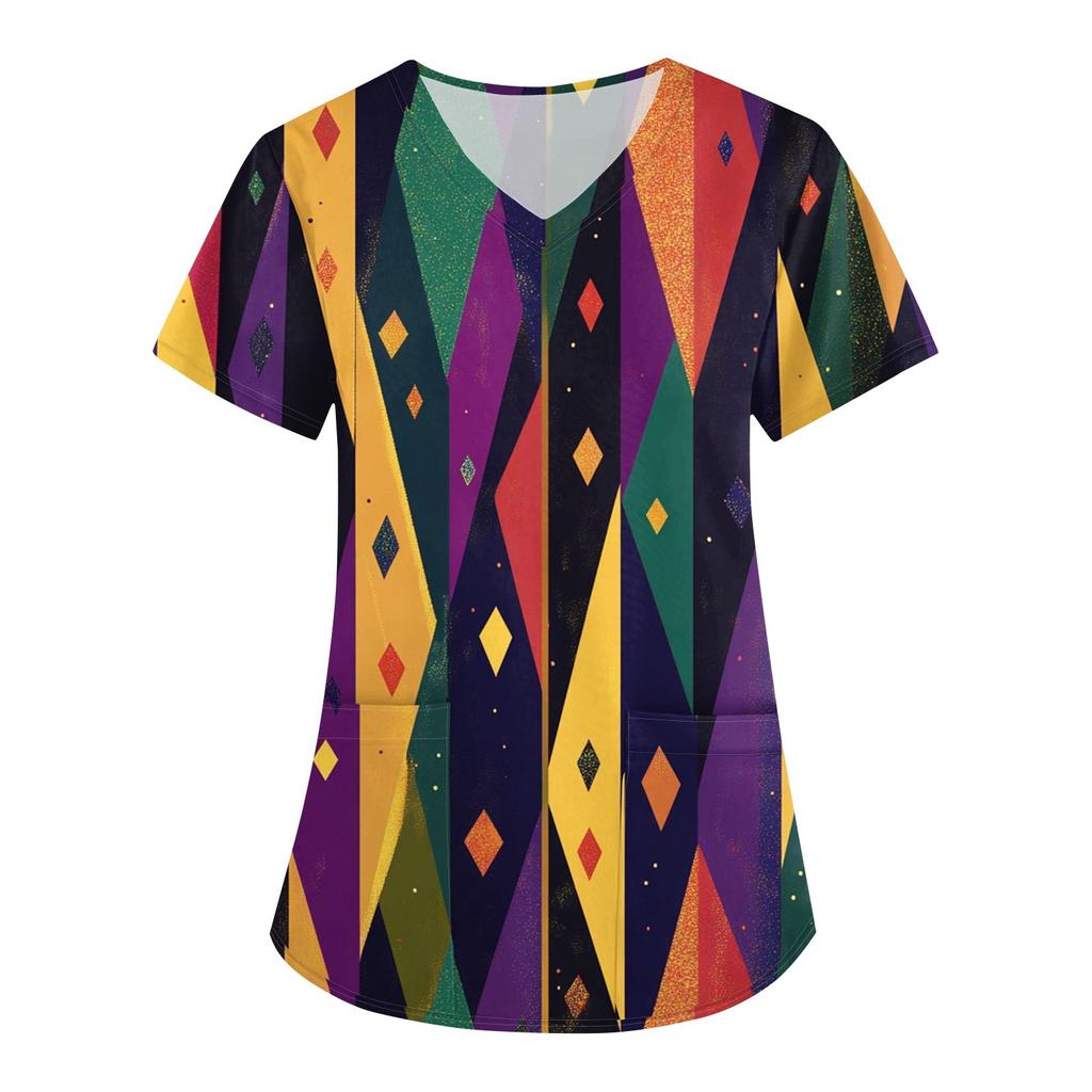 Женская мода V-образный вырез с короткими рукавами рабочая одежда с карманами карнавальный принт верхняя одежда по уходу
