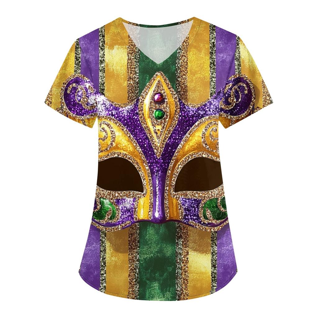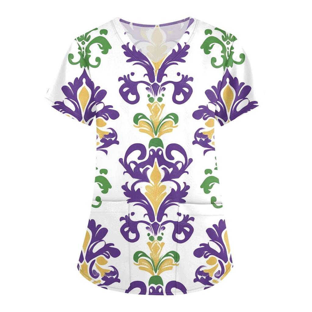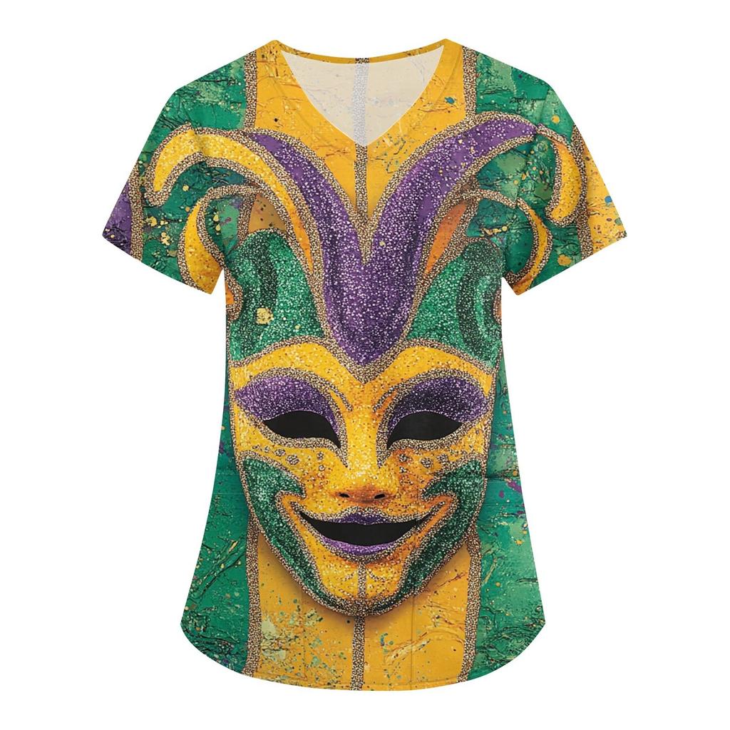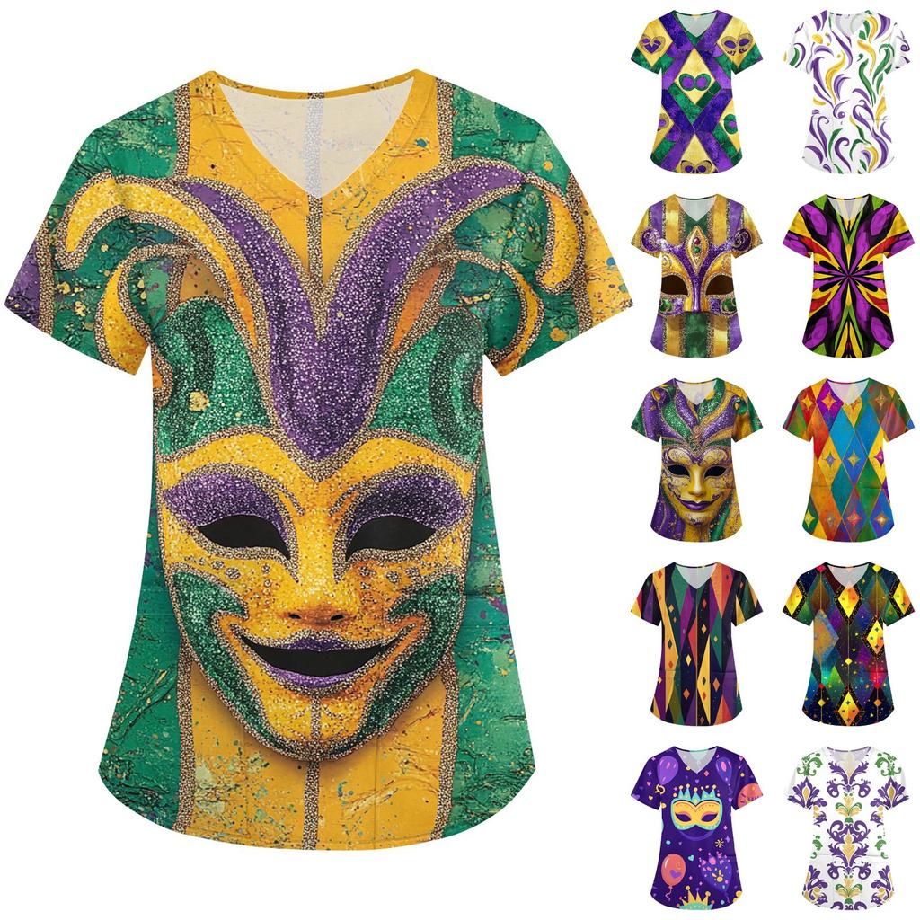 Женская мода V-образный вырез с короткими рукавами рабочая одежда с карманами карнавальный принт верхняя одежда по уходу