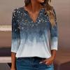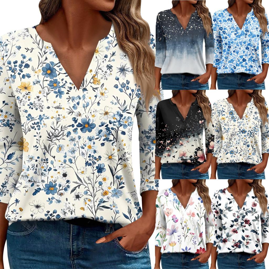 Женская футболка Футболка с принтом Рукав 3/4 Повседневные Выходные Мода Базовый V-образный вырез Обычный топ — купить товар онлайн с бесплатной доставкой до всему миру!