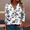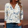 Женская футболка Футболка с принтом Рукав 3/4 Повседневные Выходные Мода Базовый V-образный вырез Обычный топ