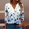 Женская футболка Футболка с принтом Рукав 3/4 Повседневные Выходные Мода Базовый V-образный вырез Обычный топ