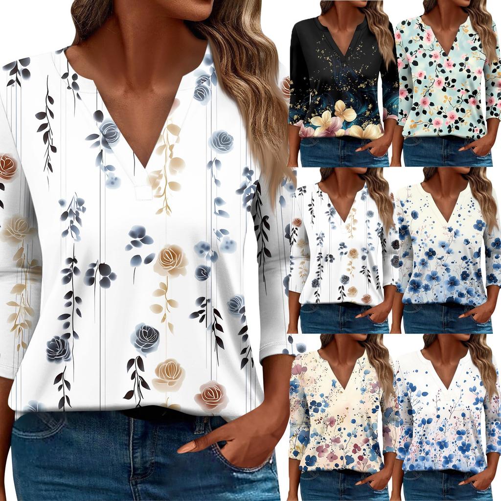 Женская футболка Футболка с принтом Рукав 3/4 Повседневные Выходные Мода Базовый V-образный вырез Обычный топ — купить товар онлайн с бесплатной доставкой до всему миру!