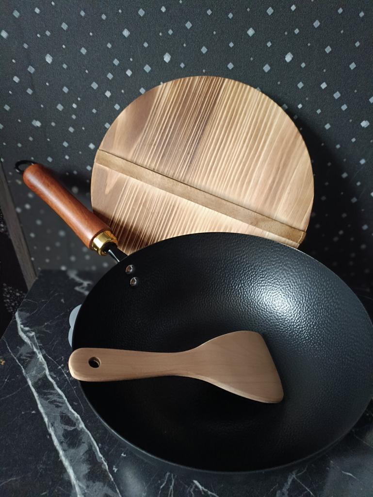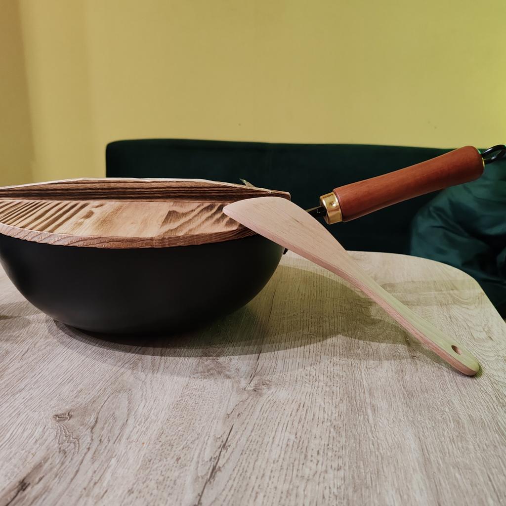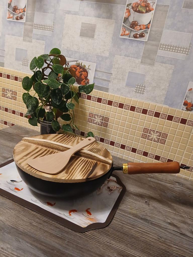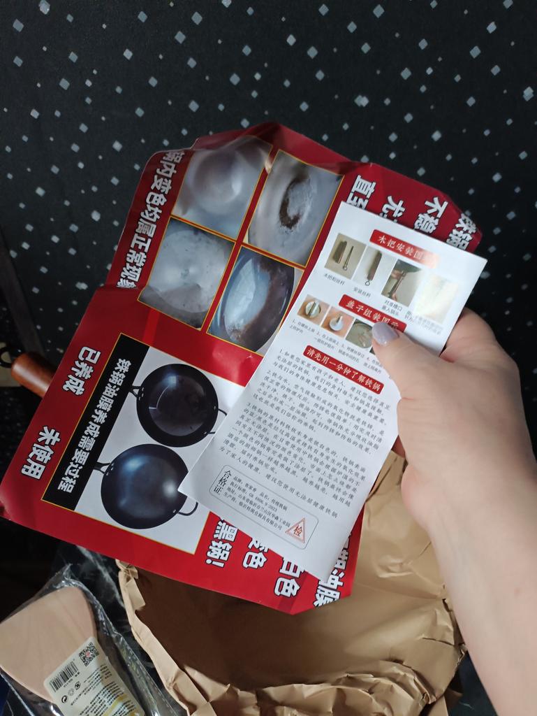 Мы часто готовим вок дома, и поэтому решили наконец приобрести профессиональную посуду для этого блюда. Выбрала сковороду вок диаметром 24 см с крышкой, в подарок положили деревянную лопатку, очень приятный бонус. Крышка из дерева, важный элемент, её нельзя замачивать, а после мытья нужно хорошо просушивать. Продавец очень внимательно подошёл к упаковке: ручка отдельно упакована в коробку, сама сковорода завёрнута в бумажный пакет и пупырчатую плёнку. Всё упаковано в прочную картонную коробку, сковорода пришла в идеальном состоянии. В комплект также приложена подробная инструкция по использованию, уходу, подготовке к первому применению и хранению. Инструкция на китайском, но легко переводится с помощью камеры в приложении Google Translate. Первые впечатления: сковорода тонкостенная, быстро нагревается и быстро остывает. В процессе первого использования немного пригорала еда, по инструкции это нормально, легко отмывается. Полупрофессиональная сковорода вок высокого качества, удобная и практичная, отлично подходит для домашнего приготовления. Рекомендую тем, кто часто готовит вок и ценит качество и удобство. ⭐ Продавец упаковал товар на максимум качества. ⭐ Трек номер отслеживался до почтового отделения. ⭐ В приложении пришло уведомление о готовности к выдаче заказа. ⭐ Доставка в Петербург заняла 22 дня.