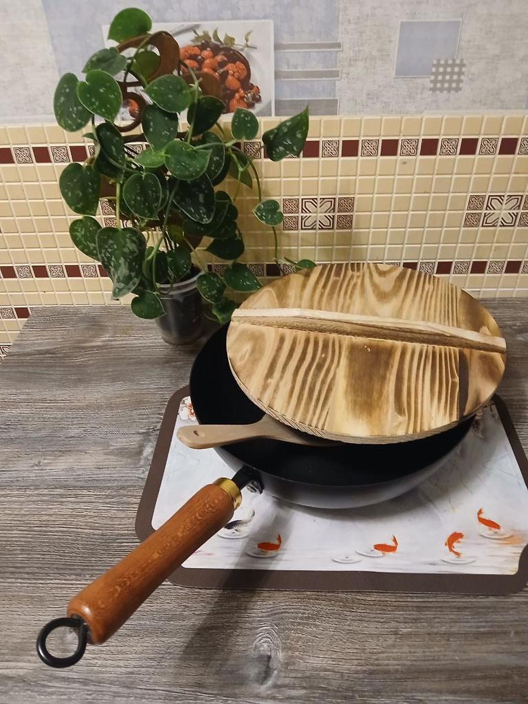 Сковородка - вок! Значится у продавца как «мини», но я бы так не сказала. В диаметре она 26 см — не огромная, но для домашнего использования это, пожалуй, лучший вариант: не большая и не маленькая. Сковородка тяжёлая, но при этом удобно лежит в руке. Имеет антипригарное покрытие. Это не чугун, возможно, дно чугунное, но мне сложно это проверить. Так как это уже не первая сковородка такого типа, которую я купила, могу сказать, что в хозяйстве это отличная помощница. Пришла хорошо упакованной. Ручка была отдельно, её нужно установить самостоятельно — делается это легко. В комплекте — деревянная крышка (без покрытия) и деревянная ложка в подарок. В этом воке я готовлю не только азиатскую еду, но и чисто наши, родные блюда, например, тушёную куриную печень. Рекомендую! 👍 Я не прощаюсь, M_K #вок #сковородка #азия #кухня