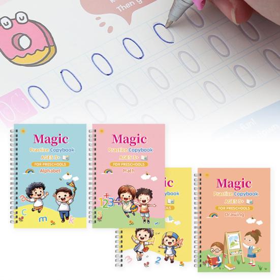 Двусторонний подход к обучению: Каждая книга обеспечивает двойной опыт обучения: страницы с нечетными номерами содержат прописи с канавками для начинающих и быстро выцветающие чернила.. В отличие от этого, на четных страницах предлагаются продвинутые упражнения с полными словами, паттернами и более медленным выцветанием чернил для продолжительных тренировок до одного часа.