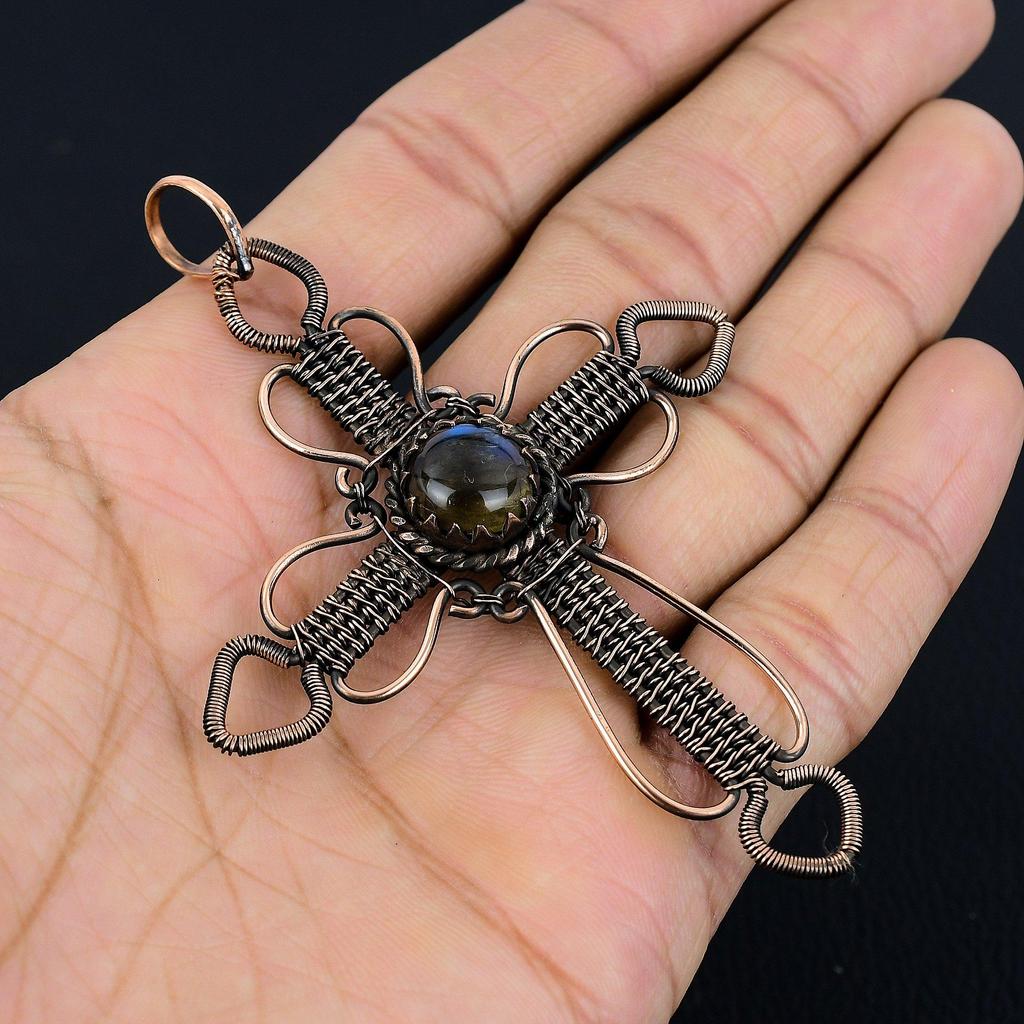 Подвеска из лабрадорита, Подвеска ручной работы, обернутая медной проволокой 999 пробы, Антикварное украшение, Для подарка, Серебряное украшение