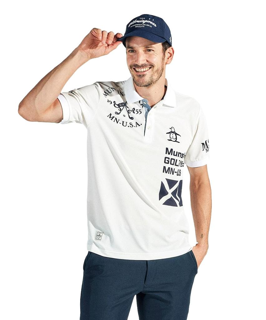 Munsingwear MG5SHS25M Short Sleeve Collared Shirt with Graphic WH00 Men's Print, Moisture-Wicking, Quick-Drying, Sunscreen, Golf, White,